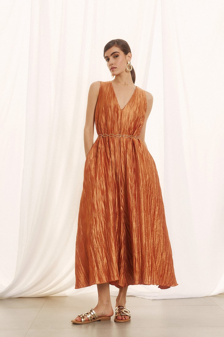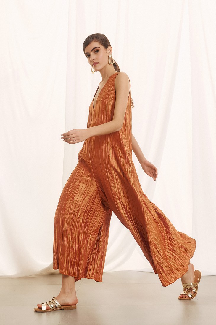 Γυναικεία Pleated Ολόσωμη Φόρμα-Terracotta