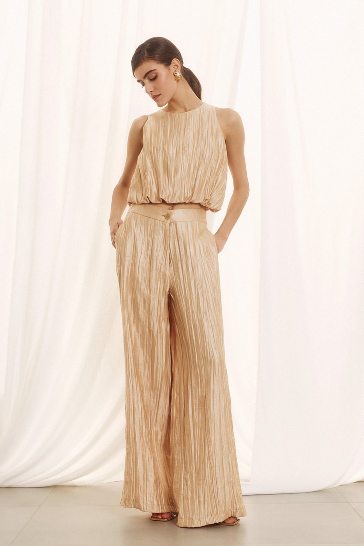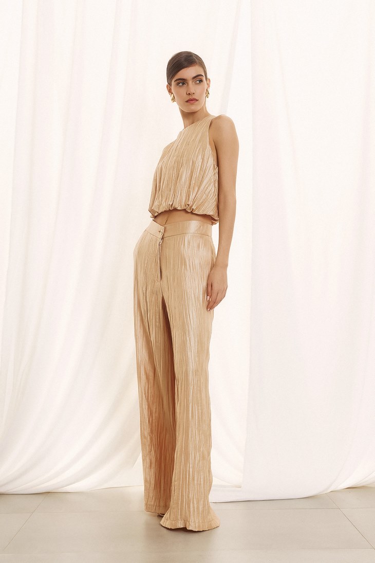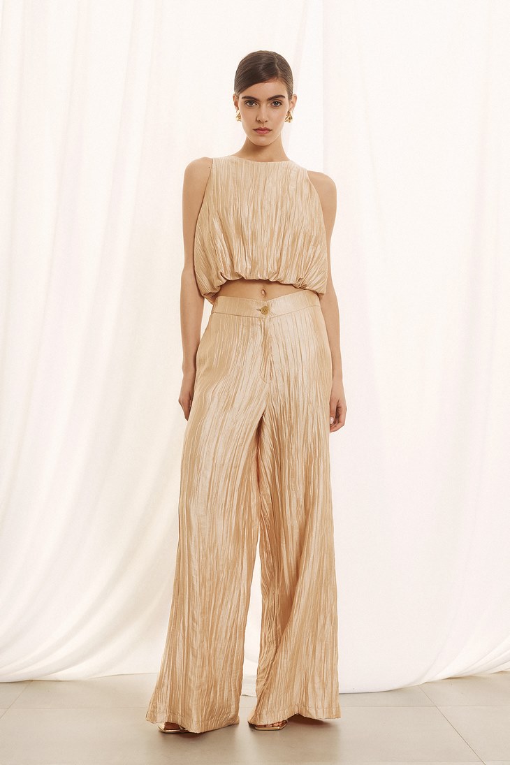 Γυναικεία Pleated Παντελόνα-Χρυσό
