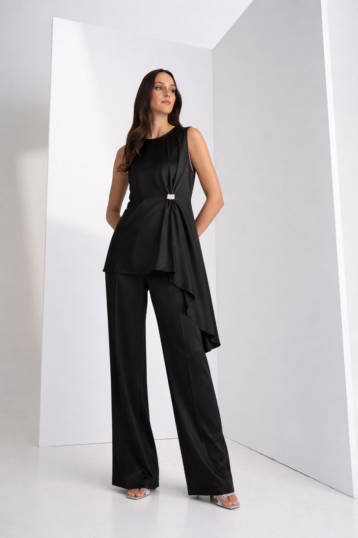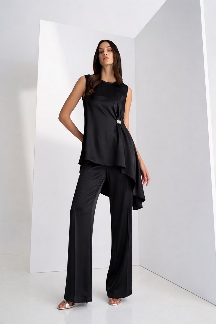 Γυναικεία Satin Παντελόνα-Μαύρο