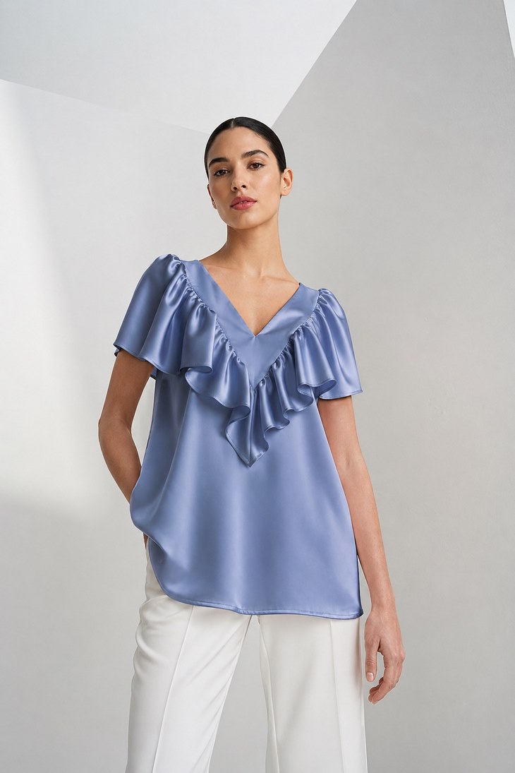Γυναικεία Satin Ruffle Μπλούζα-Σιέλ