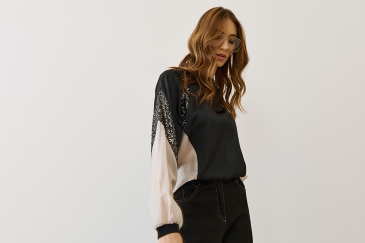 Γυναικεία Satin & Sequin Μπλούζα-Μαύρο