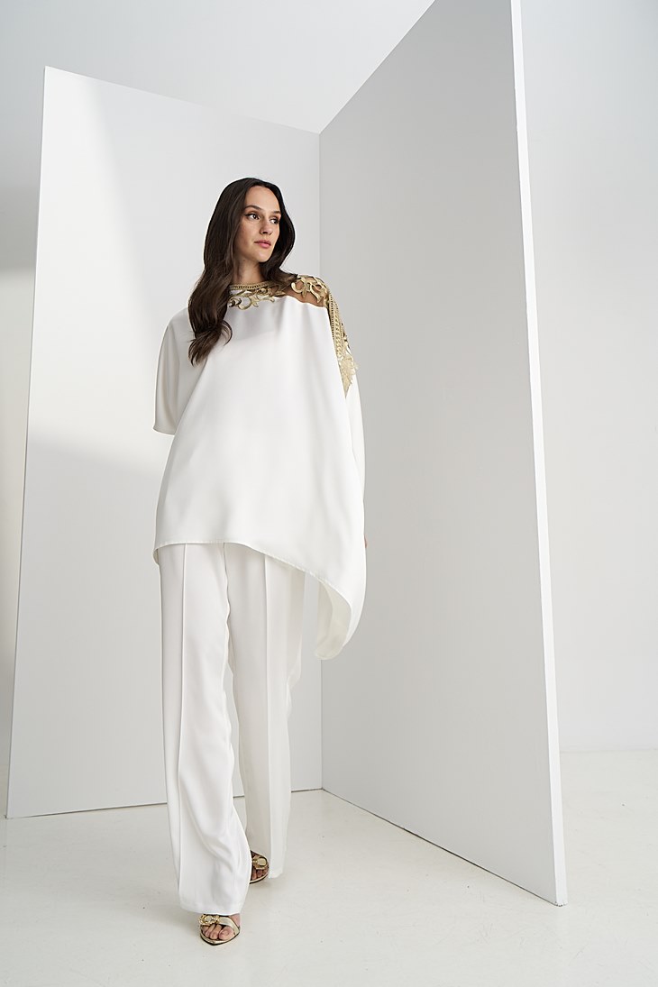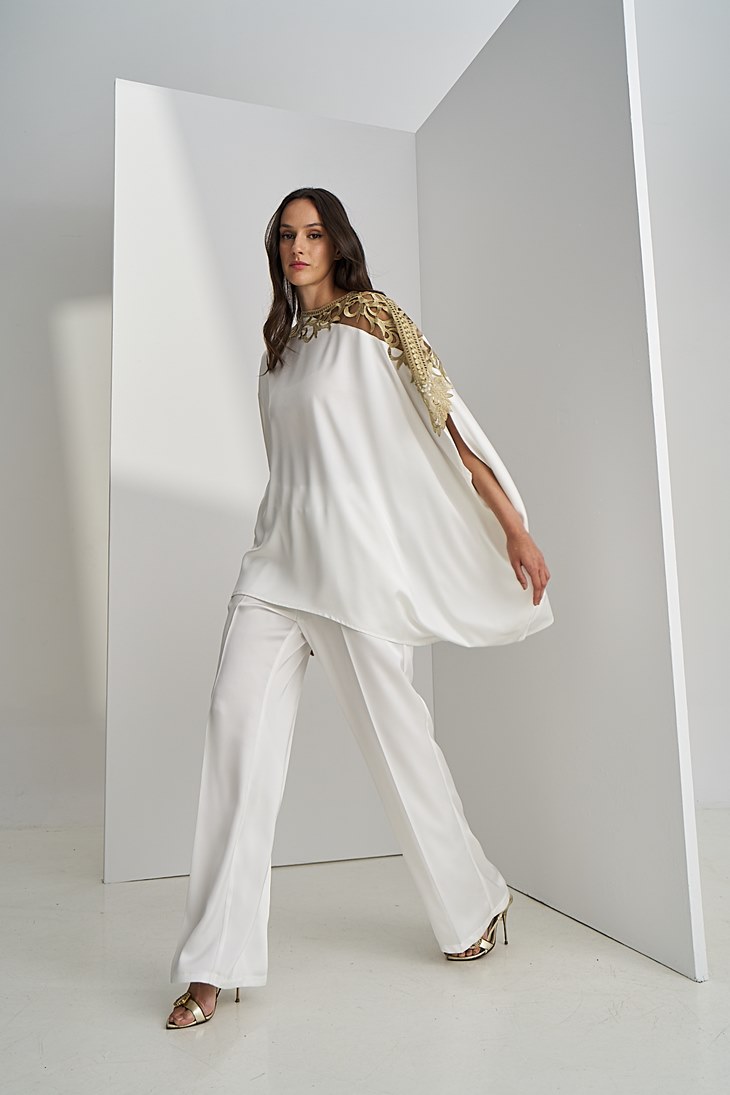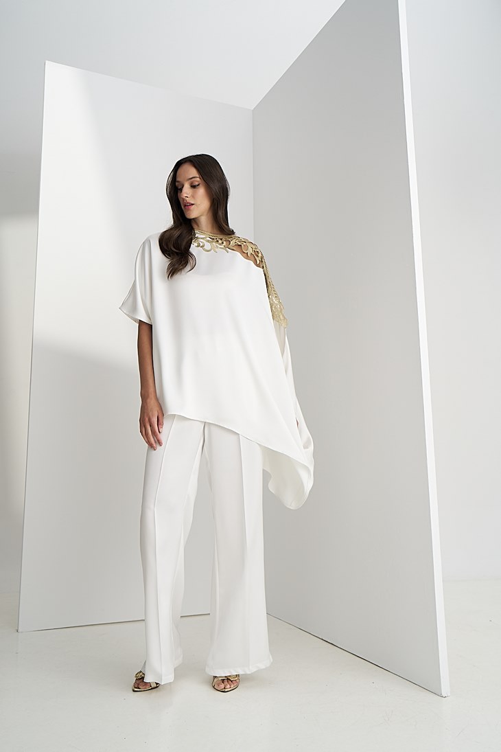 Γυναικεία Satin Straightline Παντελόνα-Λευκό