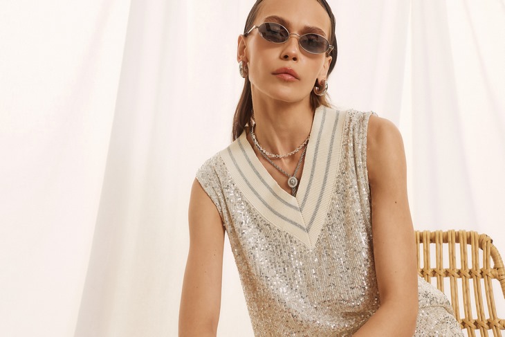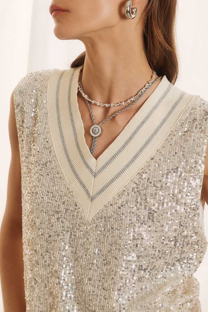 Γυναικεία Sequin Αμάνικη Μπλούζα-Aσημί