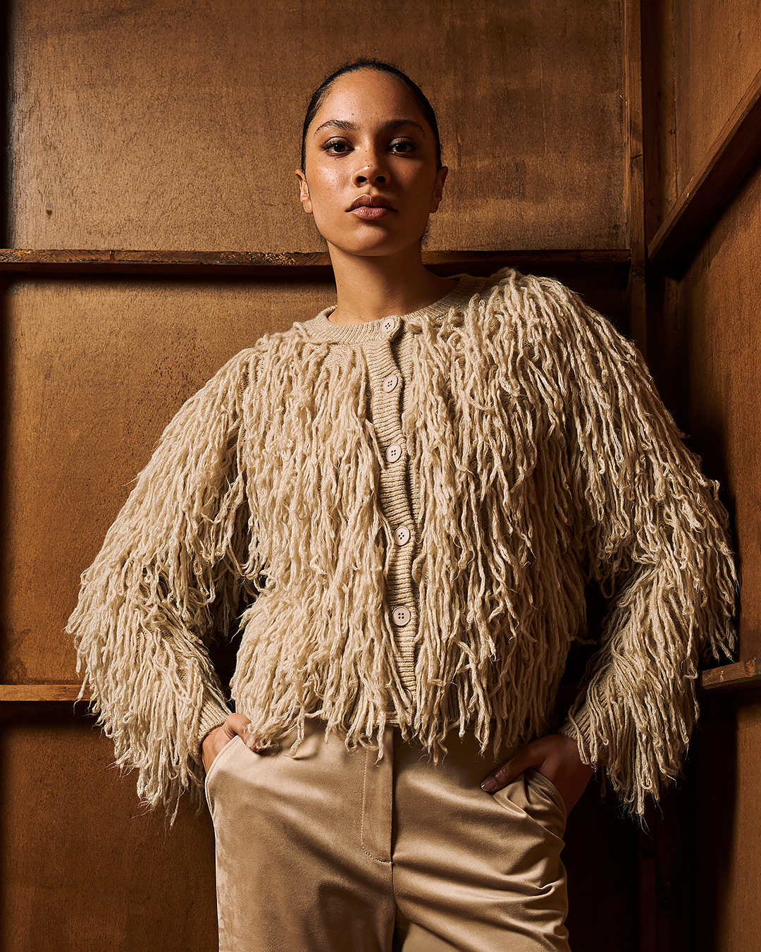 Γυναικεία Short fringed knit Ζακέτα-Μπέζ