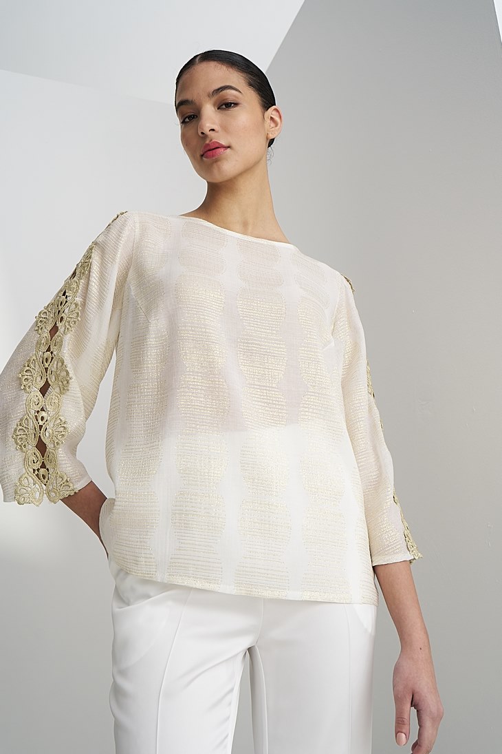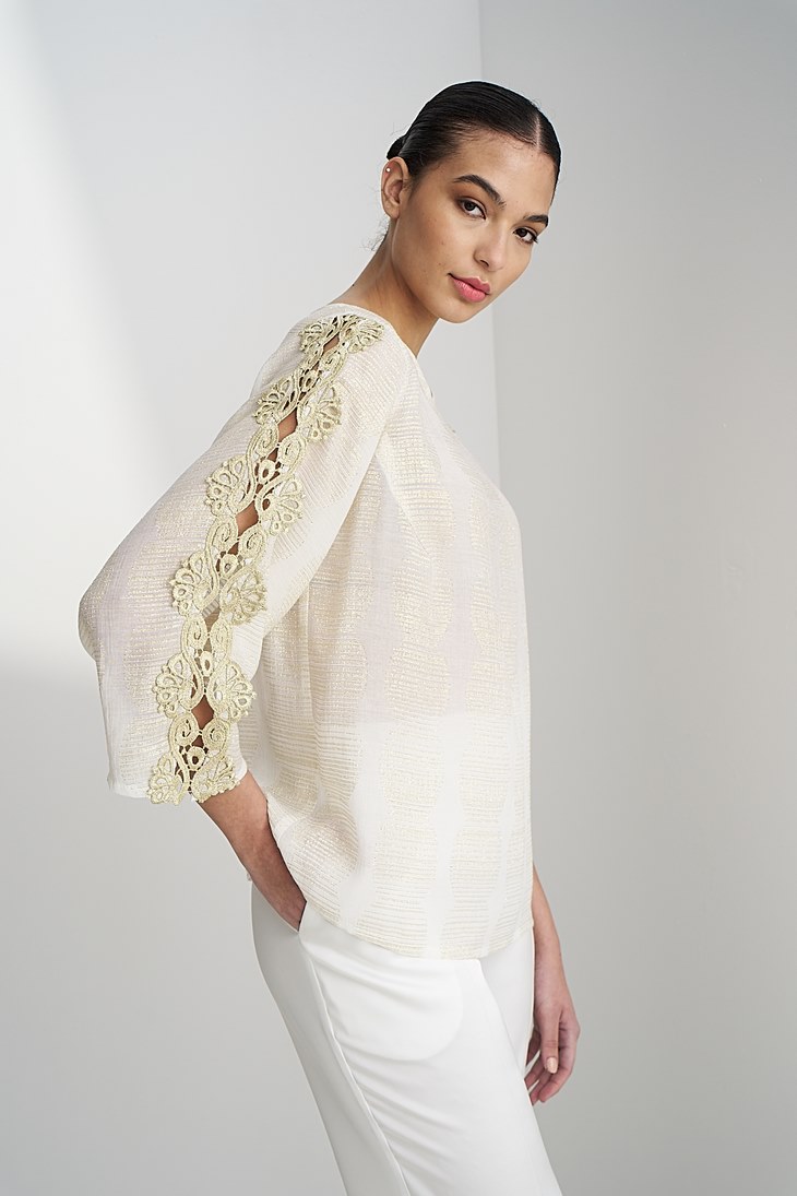 Γυναικεία Shoulder Gold Detailed Μπλούζα-Εκρού