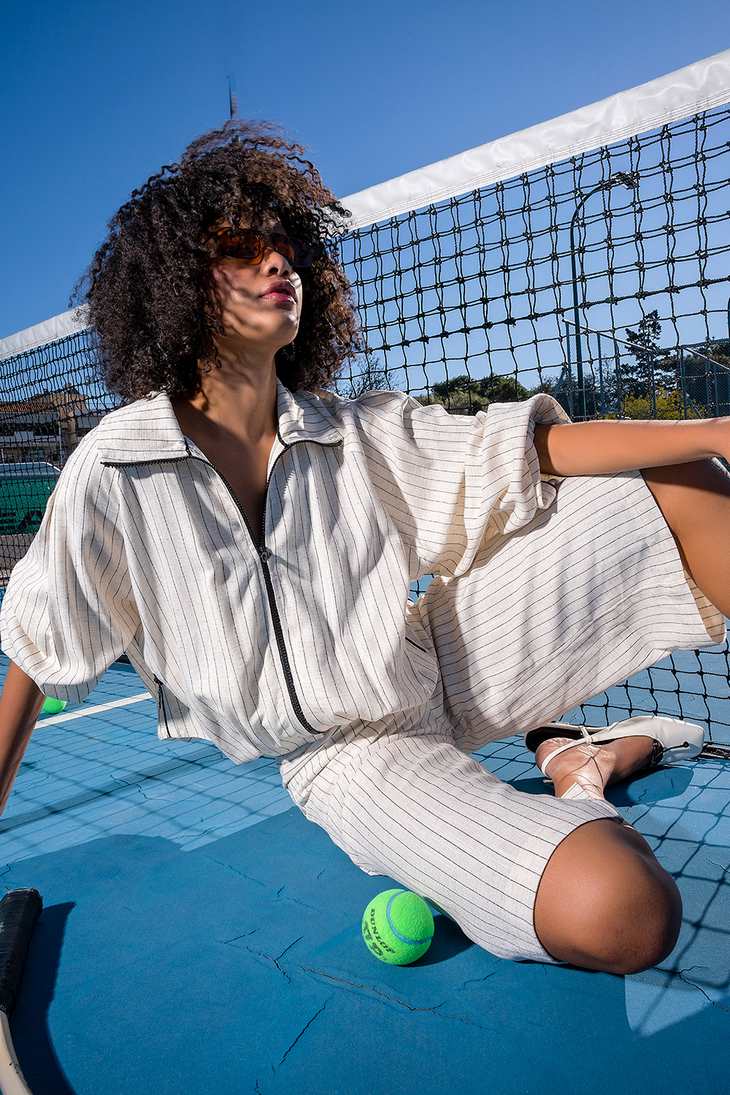 Γυναικεία Striped Βερμούδα-Μπεζ