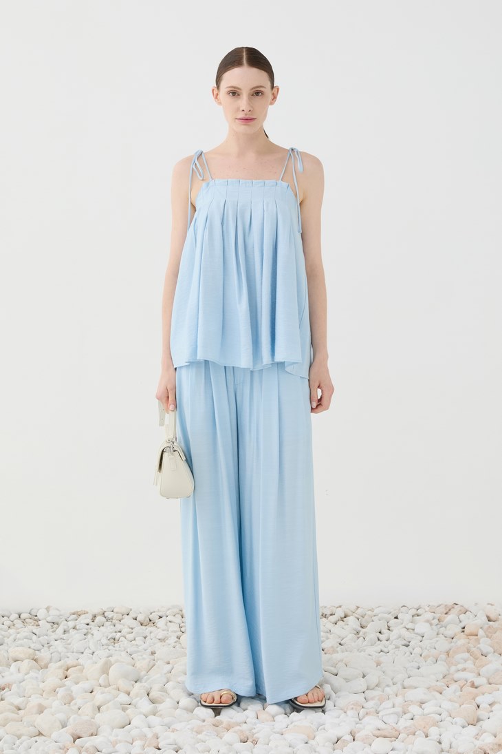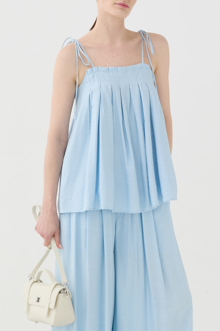 Γυναικεία Tie Strap Pleated Μπλούζα-Σιελ
