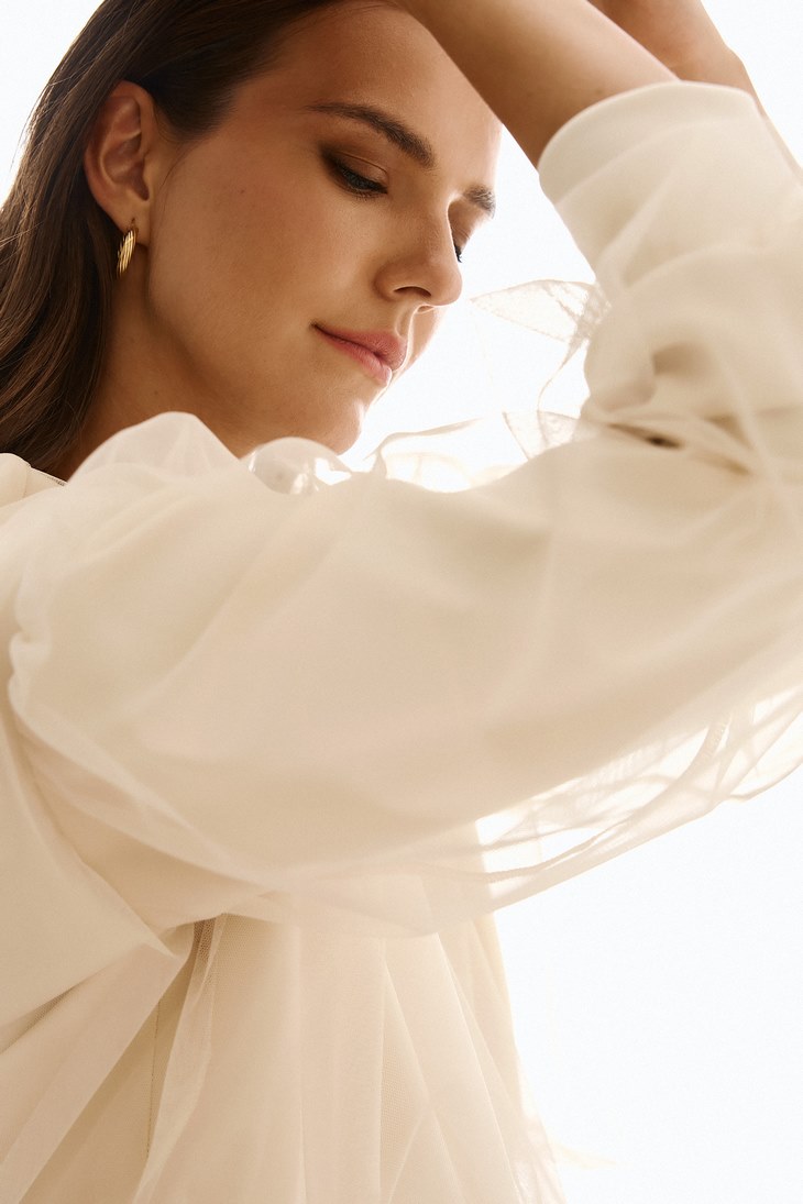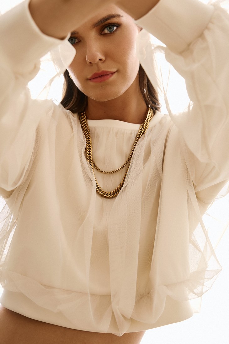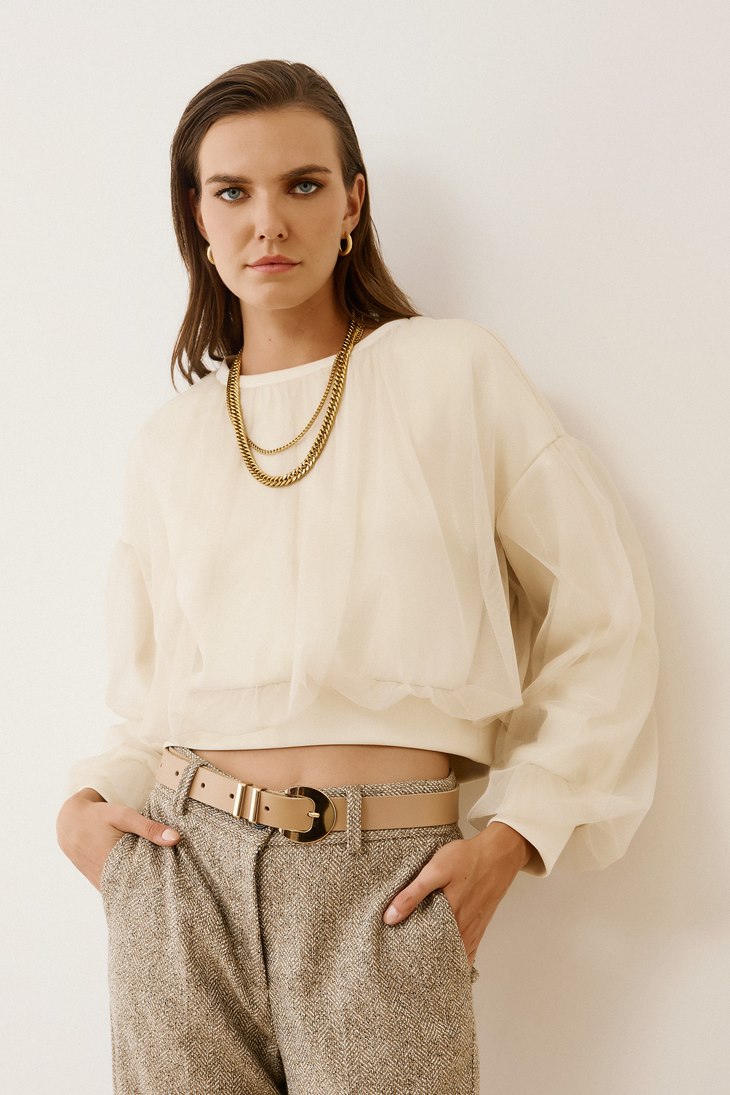 Γυναικεία Tulle Detail Μπλούζα-Εκρού