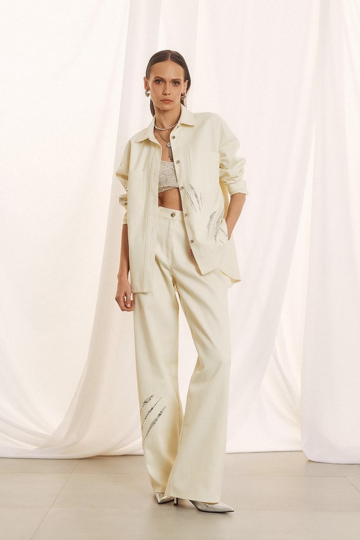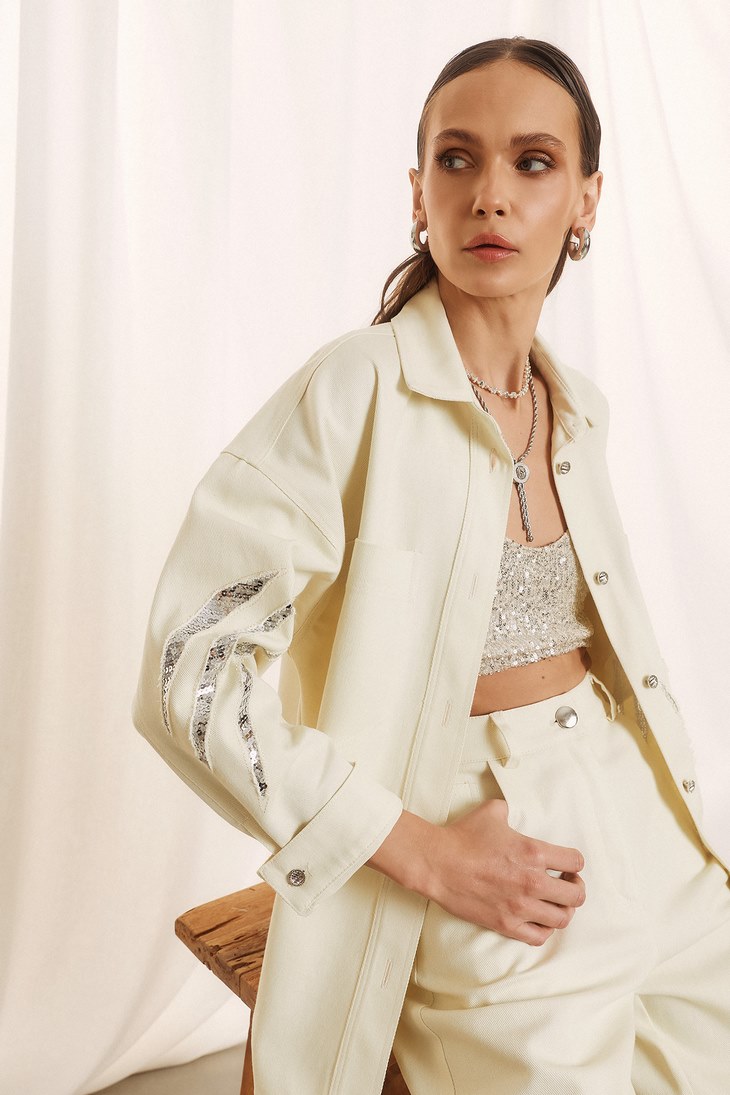 Γυναικείο Οvershirt Glam Detail Jacket-Εκρού
