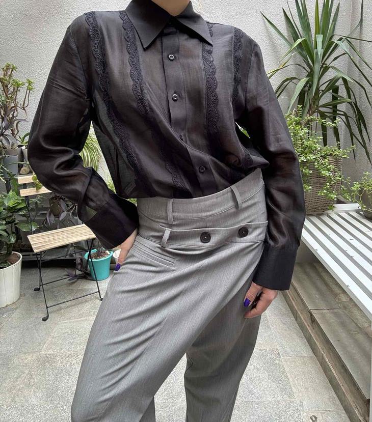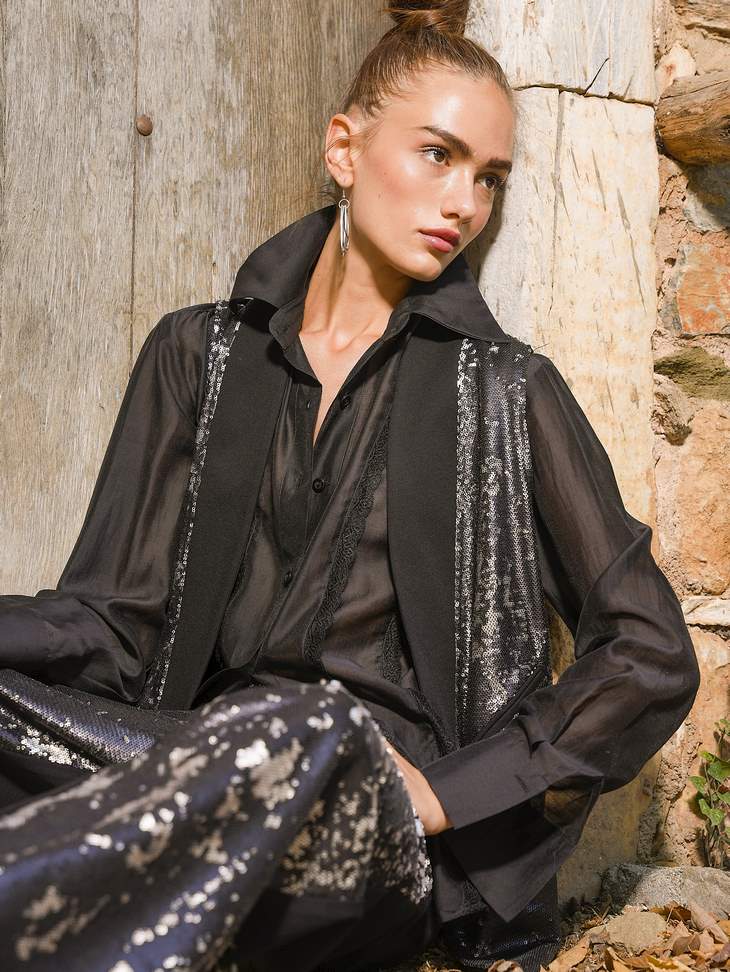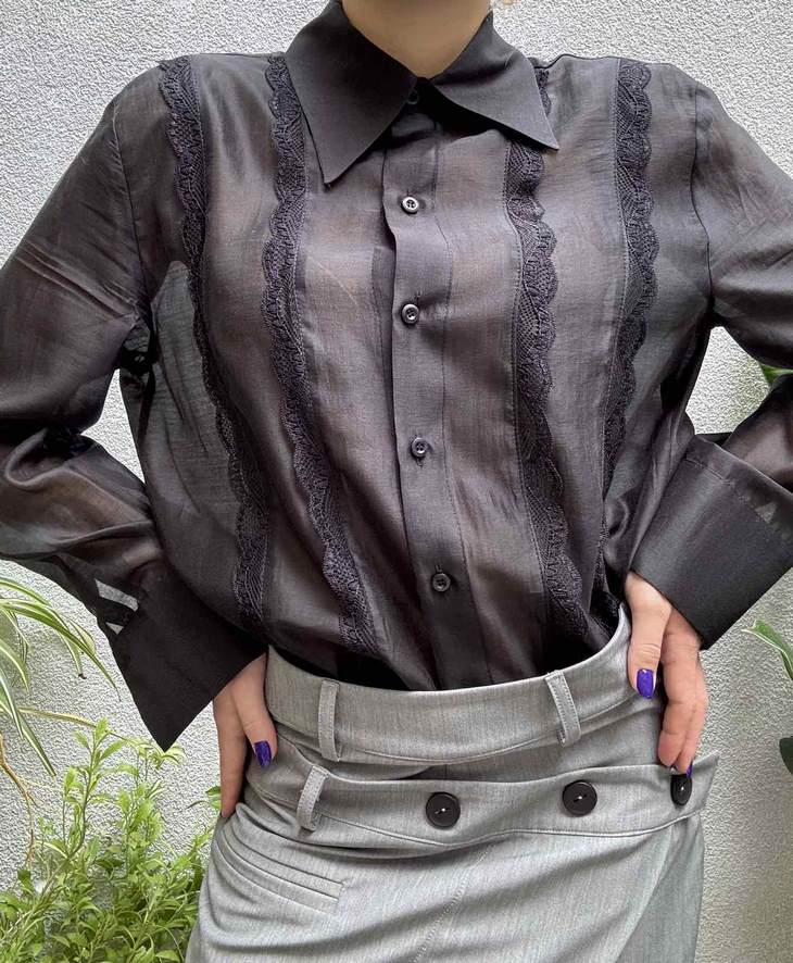 Γυναικείο Πουκάμισο Lacedetail-Μαύρο
