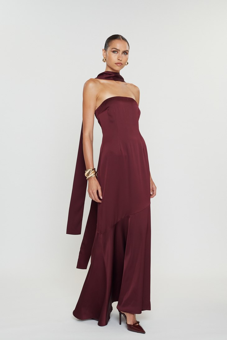 -Maxi στράπλες φόρεμα με σατινέ υφή
