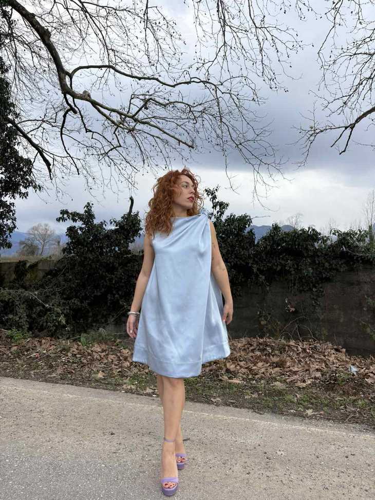 Γυναικείο Bow Shoulder Sack Mini Φόρεμα-Σιελ