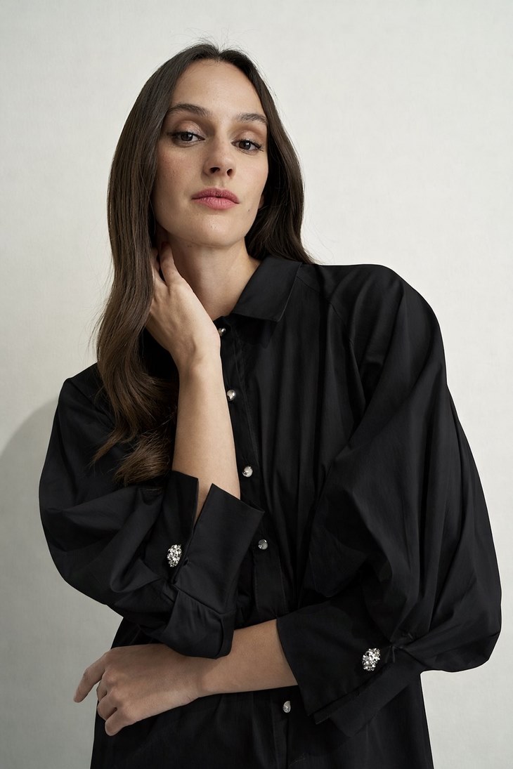 Γυναικείο Cotton Glam Button Πουκάμισο-Μαύρο