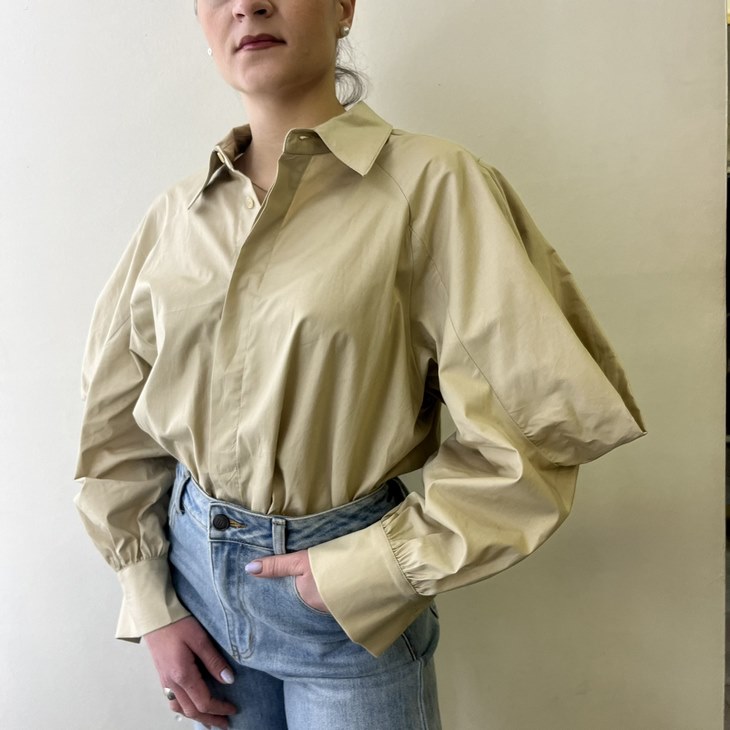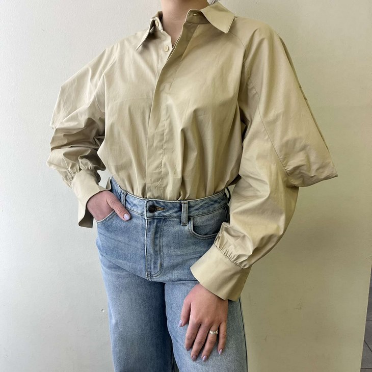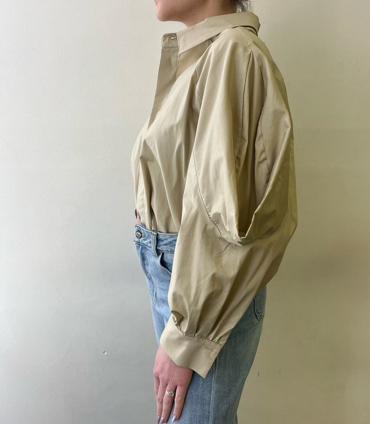 Γυναικείο Designed Sleeve Πουκάμισο-Μπεζ