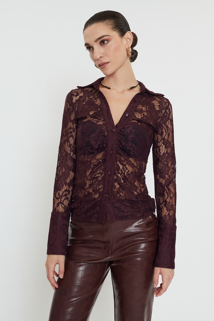 Γυναικείο Elora Lace Πουκάμισο-Burgundy