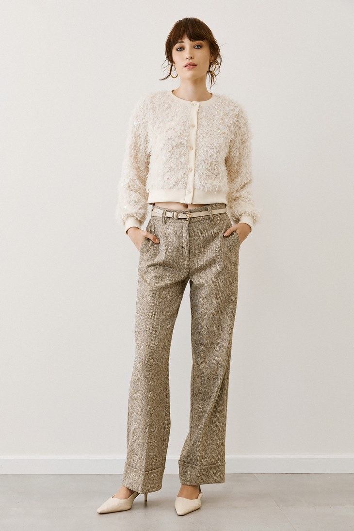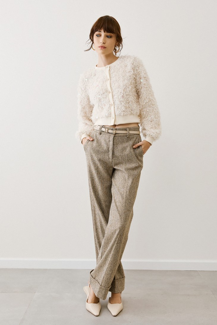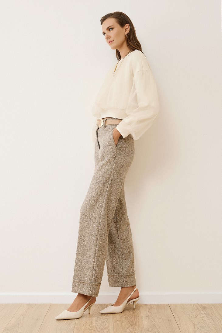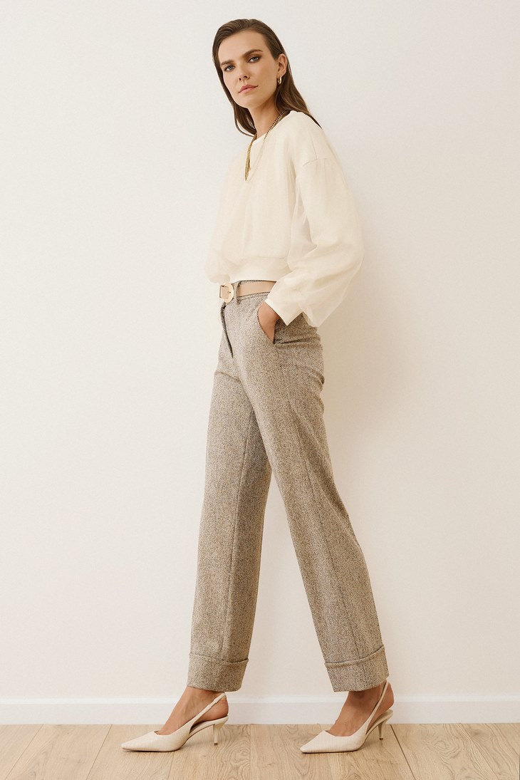 Γυναικείο Herringbone Παντελόνι-Μπεζ