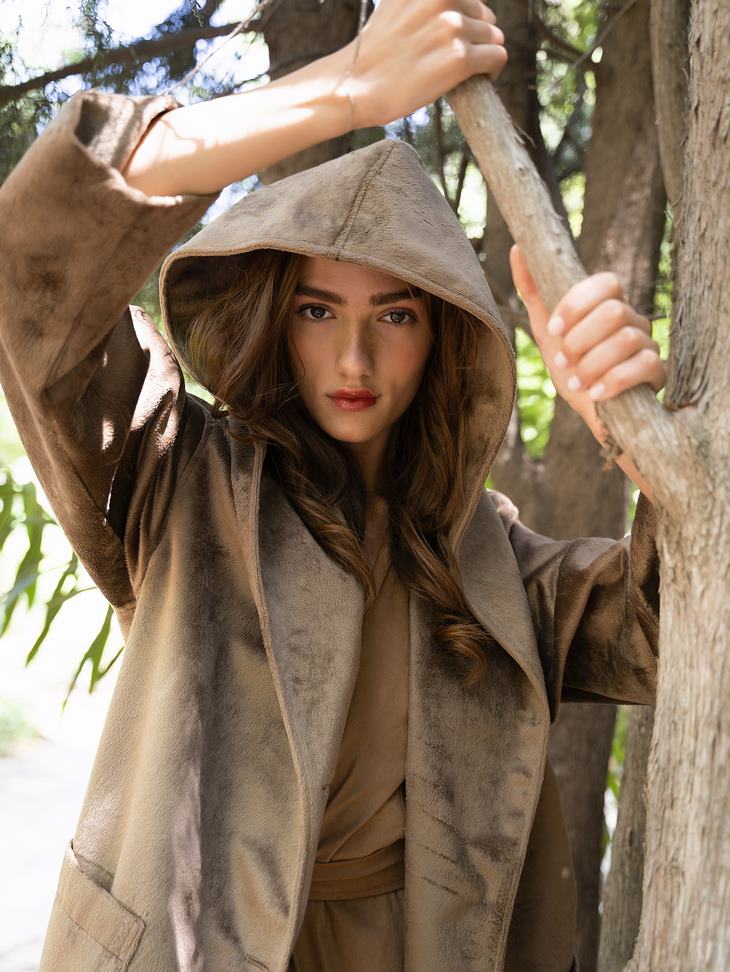 Γυναικείο Hooded Πανωφόρι-Μπεζ