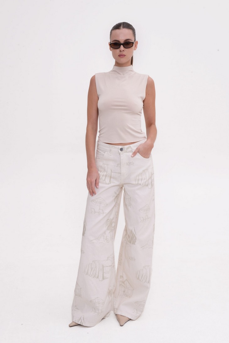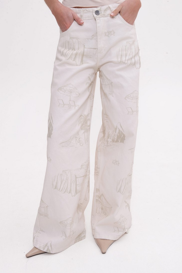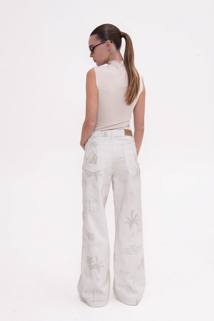 Γυναικείο Jean Παντελόνι Palm Stories Ptinted-Εκρού