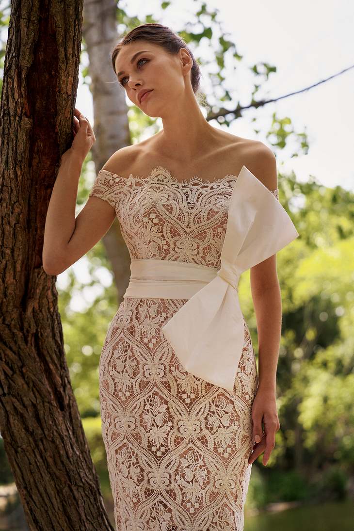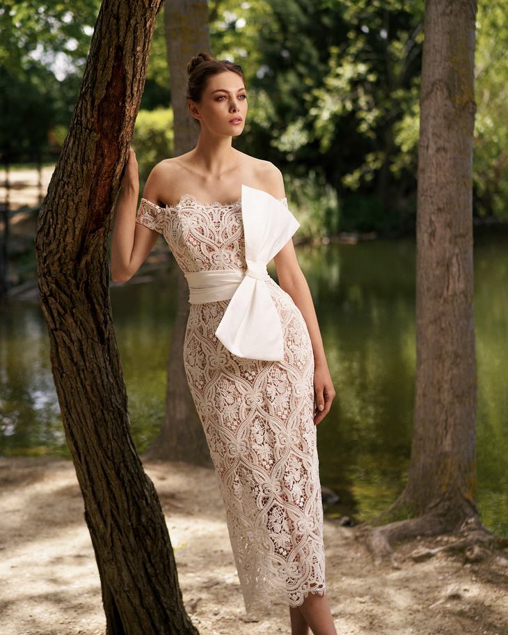 Γυναικείο Lace Midi With Bow Φόρεμα-Λευκό