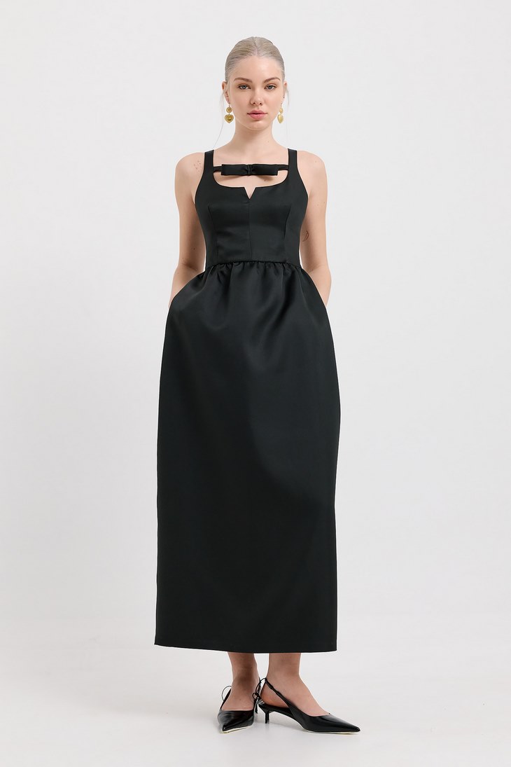 Γυναικείο Maxi Taffeta With Bow Φόρεμα-Μαύρο