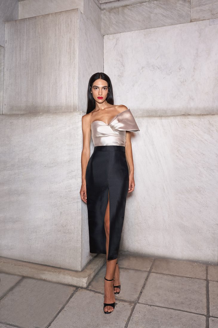 Γυναικείο Midi One Shoulder Bow Φόρεμα-Μαύρο