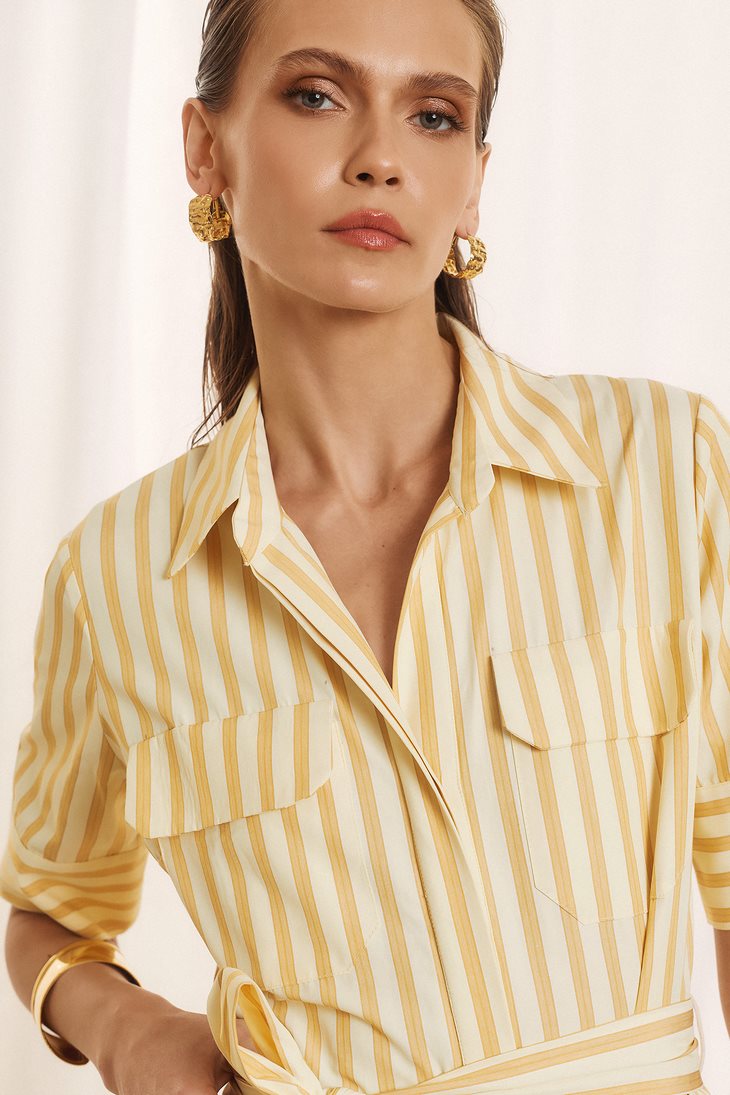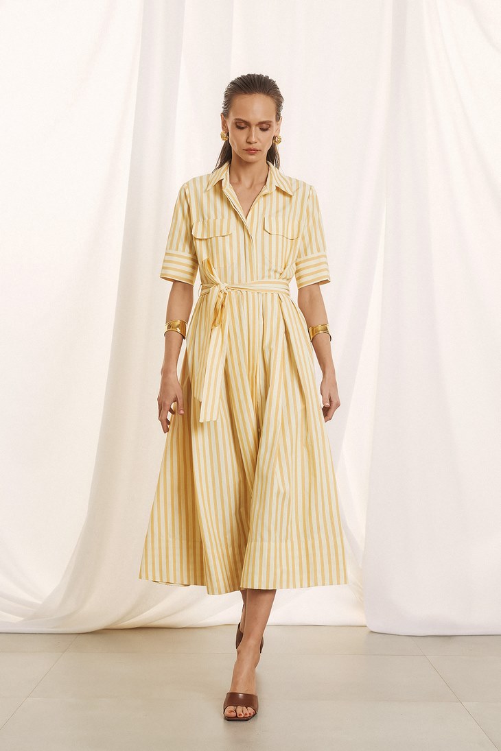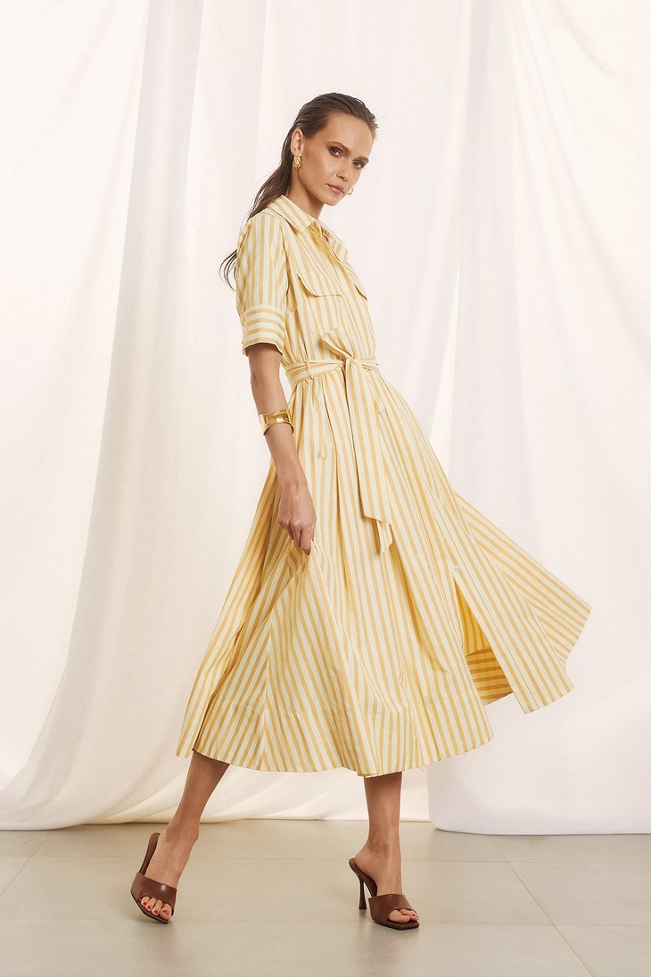 Γυναικείο Midi Striped Φόρεμα-Κίτρινο