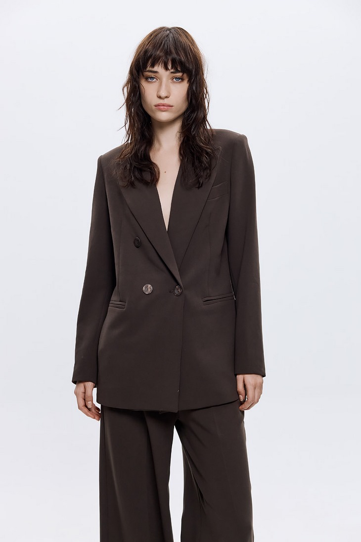 Γυναικείο Nancy Crepe Σακάκι-Καφέ