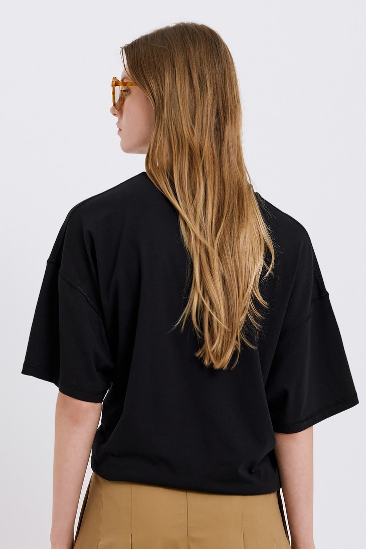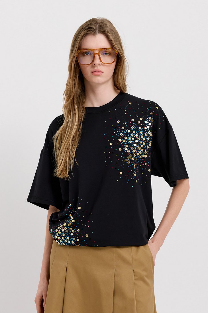 Γυναικείο Oversize Strass T-Shirt-Μαύρο