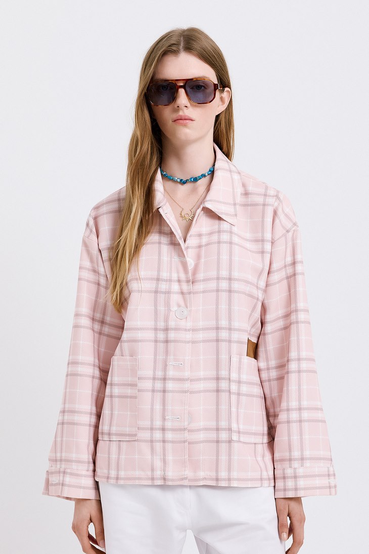 Γυναικείο Plaid Jacket-Καρό Ροζ