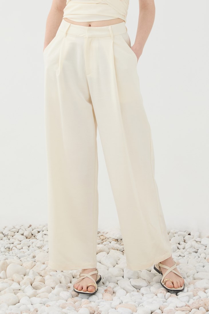 Γυναικείο Pleated Παντελόνι-Εκρού