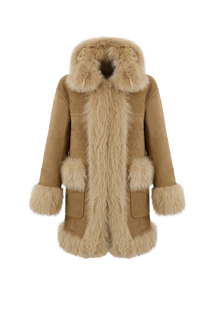 Γυναικείο Reversible Duo Coat with Detachable Hood Πανωφόρι-Caramel