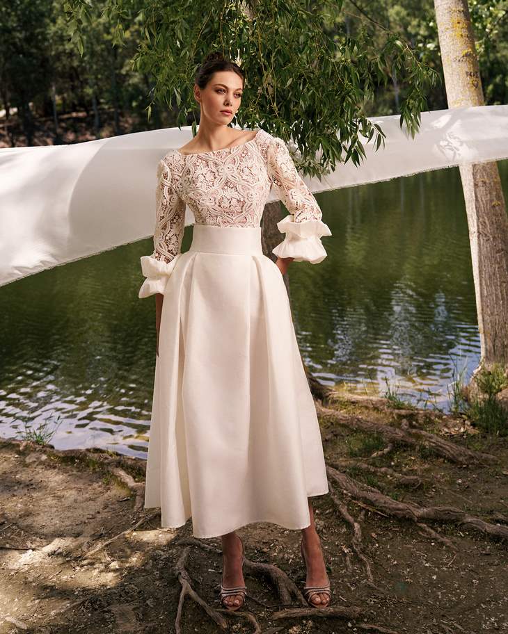 Γυναικείο Ruffle Cuff Lace Σετ-Λευκό