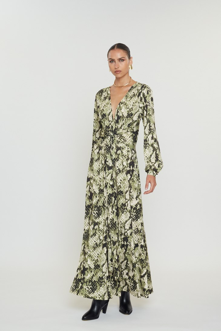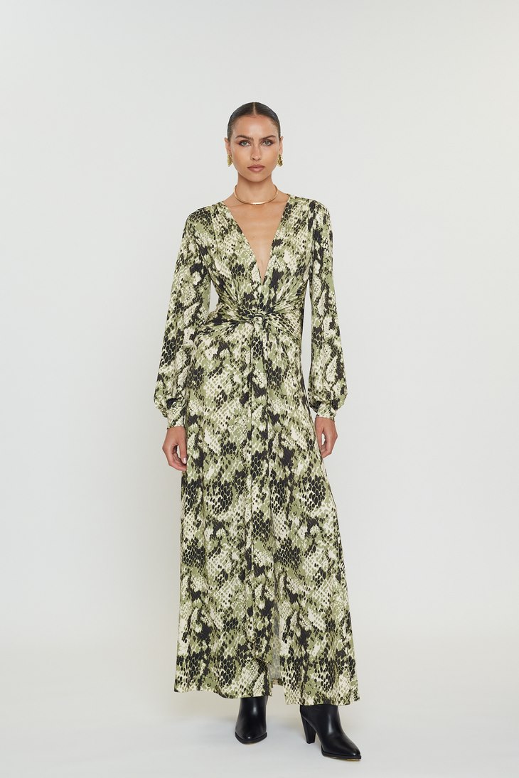 Γυναικείο Sandra SnakePrint Φόρεμα-Λαδί