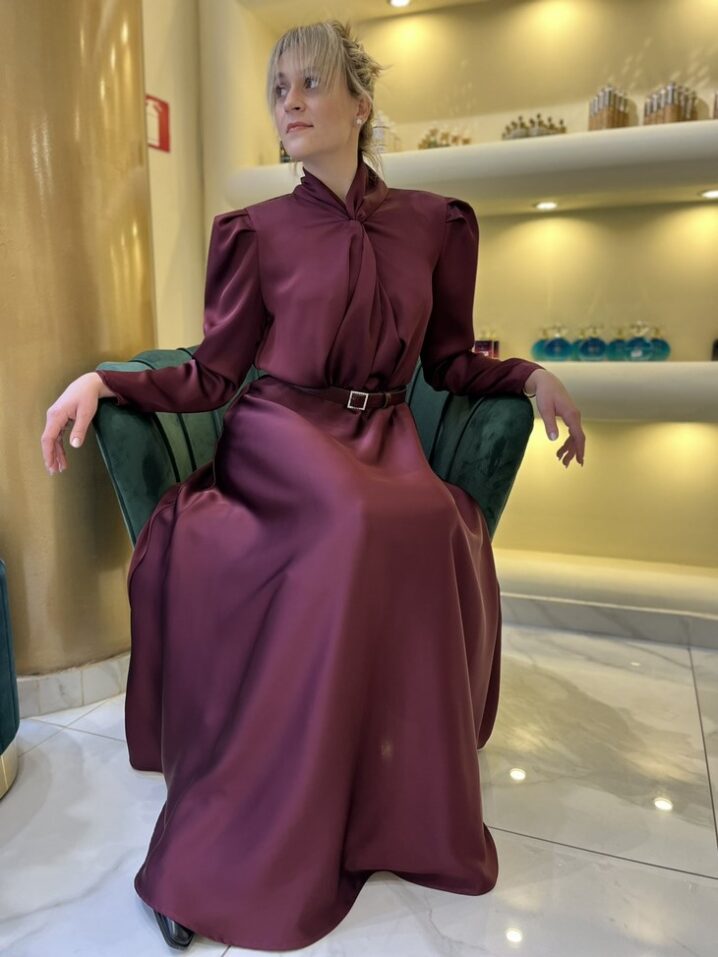 Γυναικείο Satin Φόρεμα-Burgundy