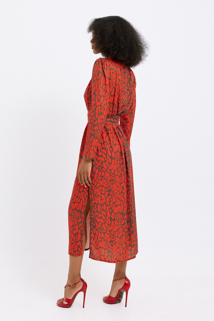 Γυναικείο Satin Leopard Vittoria Φόρεμα-Κόκκινο