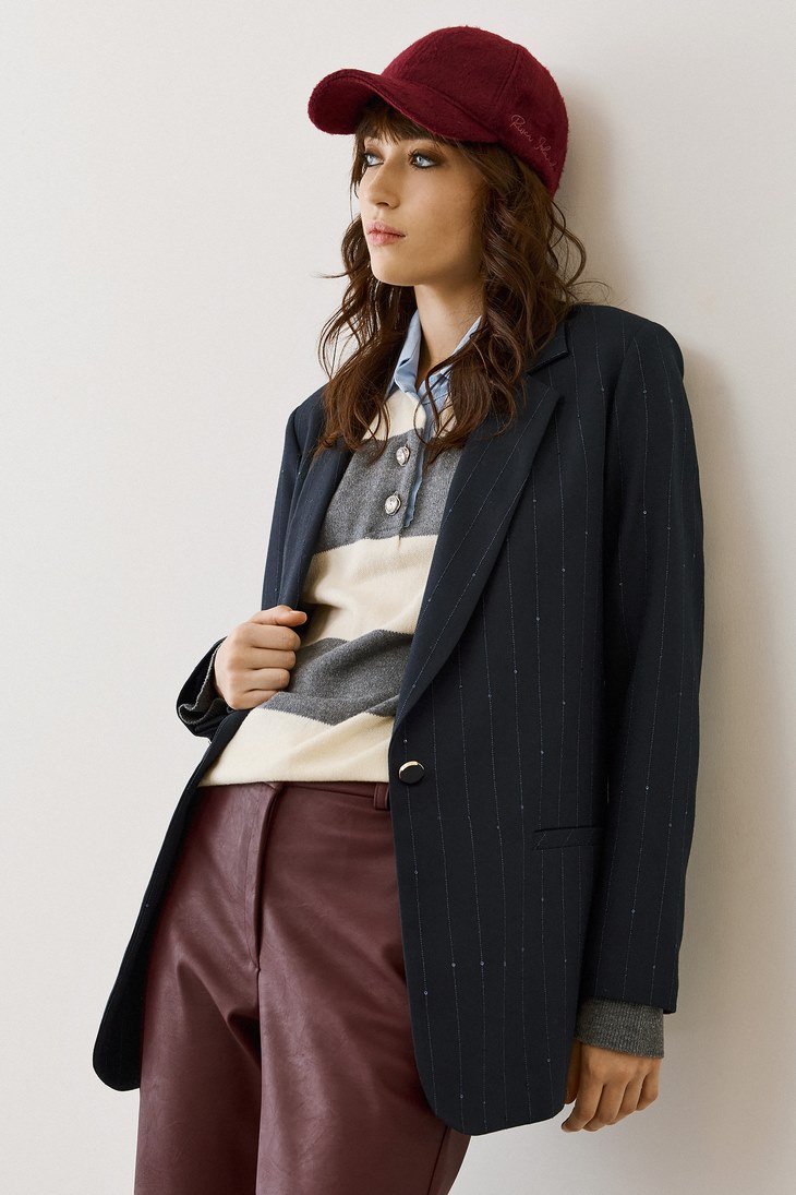 Γυναικείο Sequin Pinstripe Σακάκι-Μπλέ