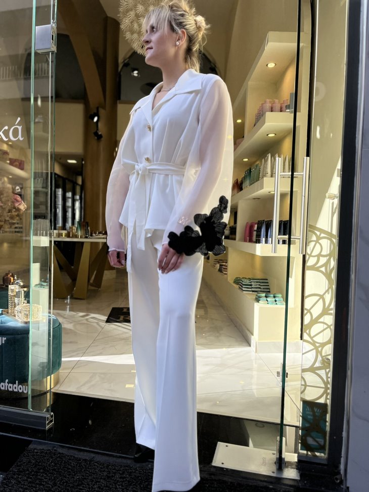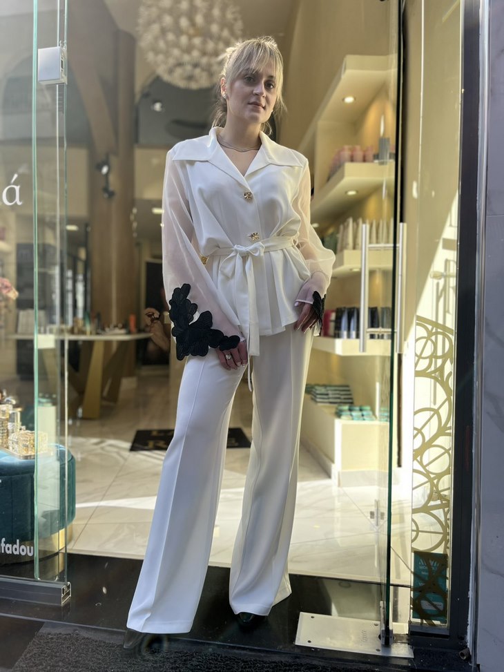 Γυναικείο Sheersleeve Σακάκι-Εκρού