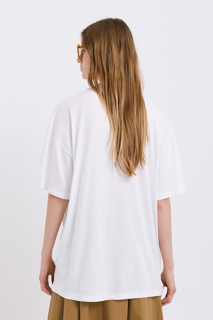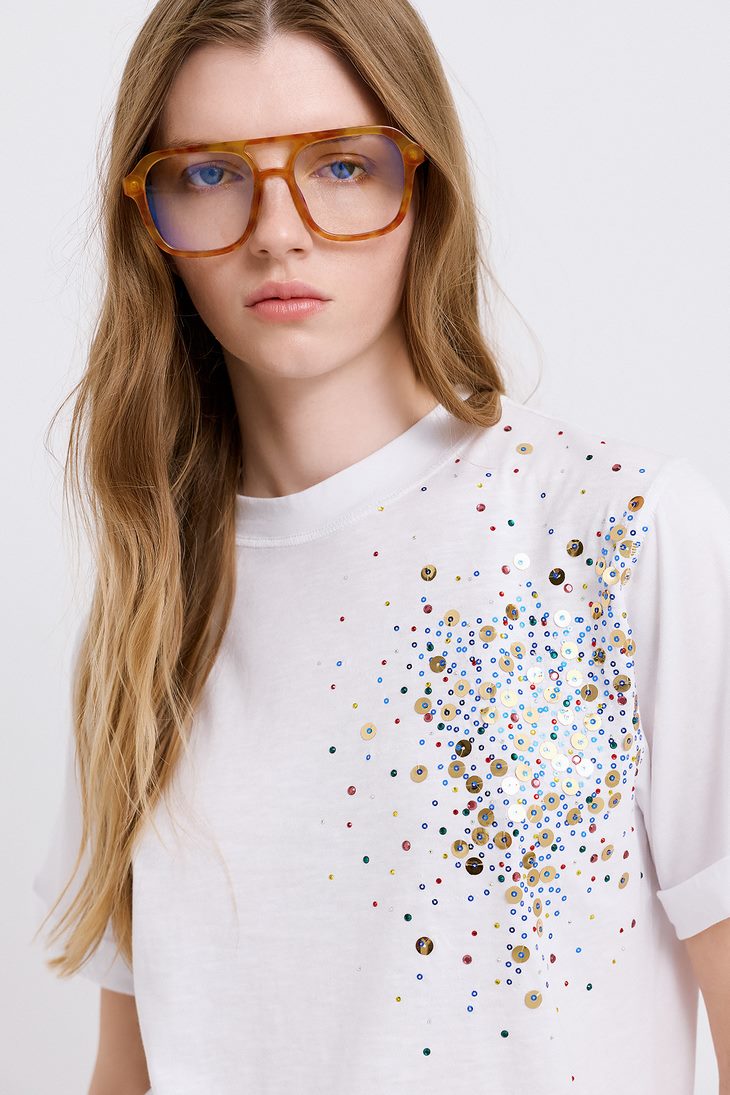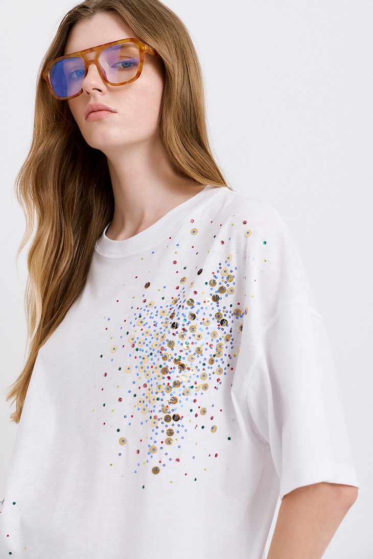 Γυναικείο Sequin Cotton T-Shirt-Λευκό