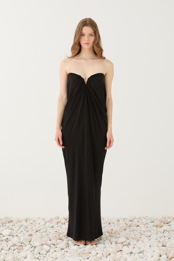 Γυναικείο Strapless Maxi Φόρεμα-Μαύρο