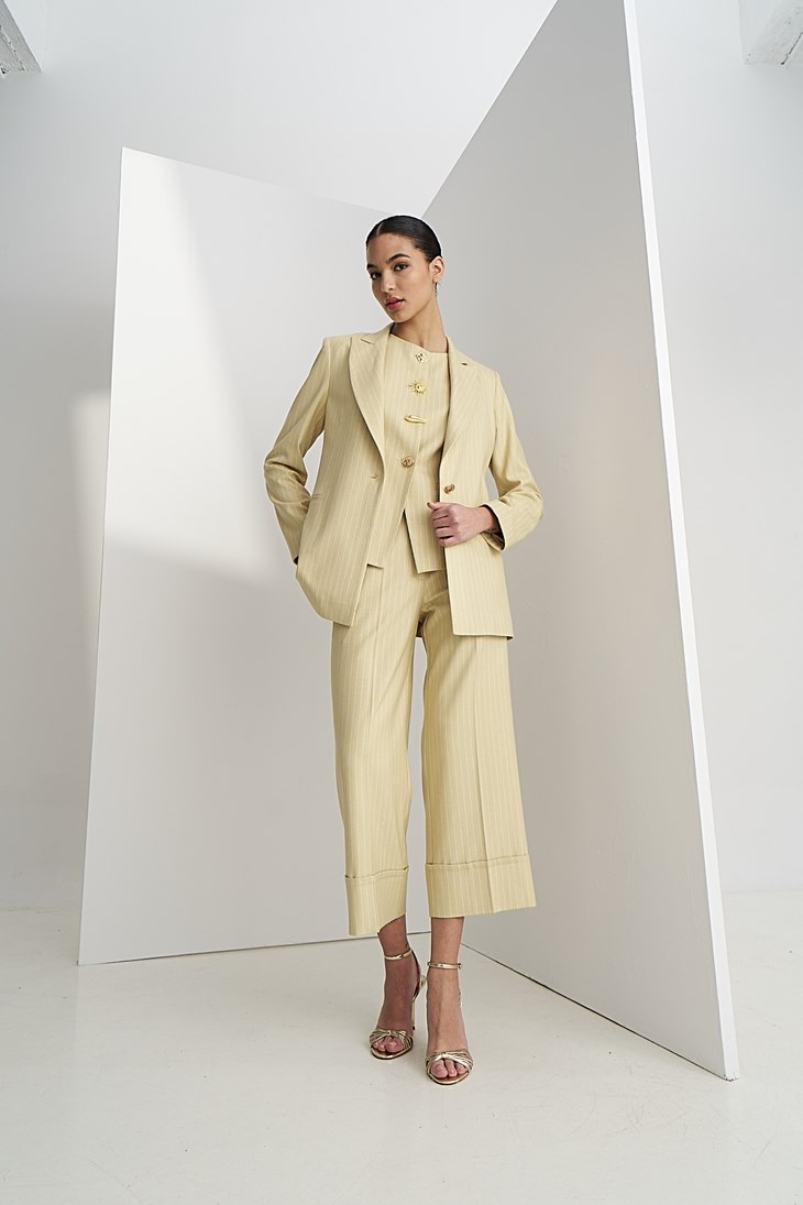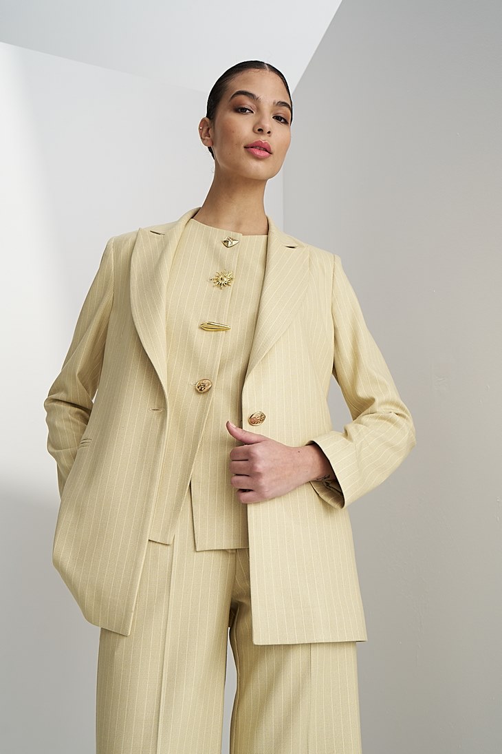 Γυναικείο Stripped Σακάκι-Μπεζ