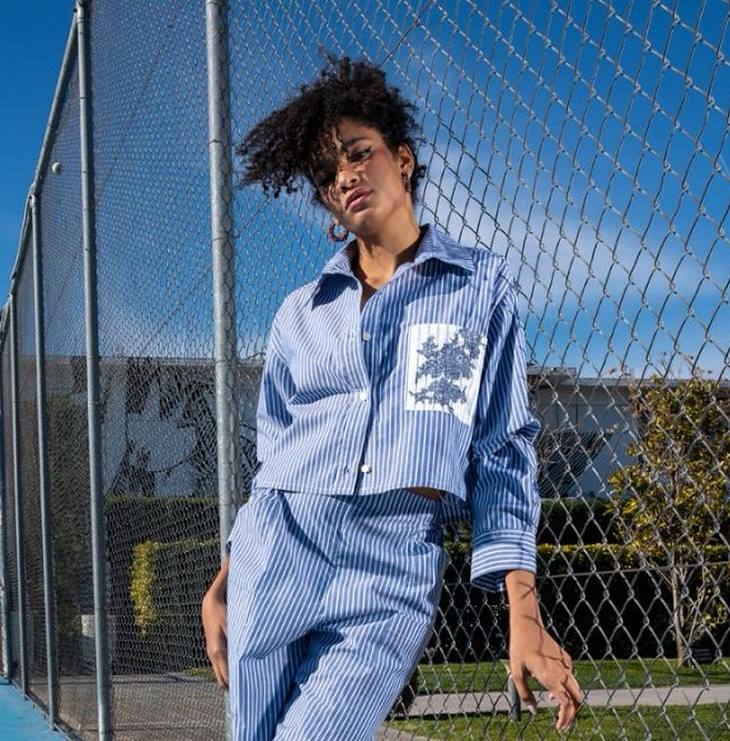 Γυναικείο Stripped Crop Πουκάμισο-Mπλε