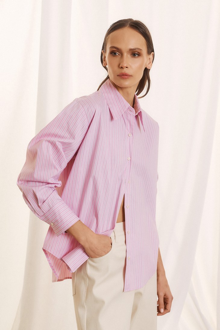 Γυναικείο Stripped Regular Fit Πουκάμισο-Ροζ