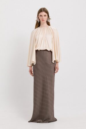 Γυναικεία Maxi Satin Polca Dot Φούστα-Καφέ