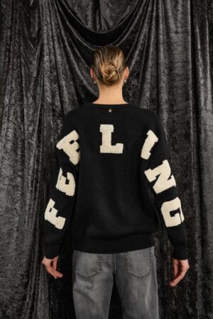Γυναικεία Feeling Πλεκτή Μπλούζα-Μαύρο